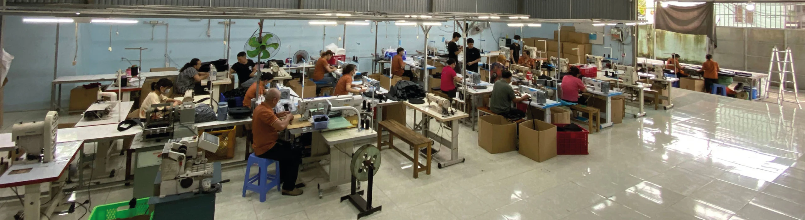 Nhà xưởng của chúng tôi có tổng diện tích 1.000m², hơn 70 công nhân lành nghề và giàu kinh nghiệm được bố trí khoa học và tối ưu cho dây chuyền sản xuất balo – túi xách. Không gian rộng rãi giúp dễ dàng tổ chức máy móc, kho nguyên vật liệu và khu vực hoàn thiện sản phẩm, đảm bảo năng suất và kiểm soát chất lượng hiệu quả.